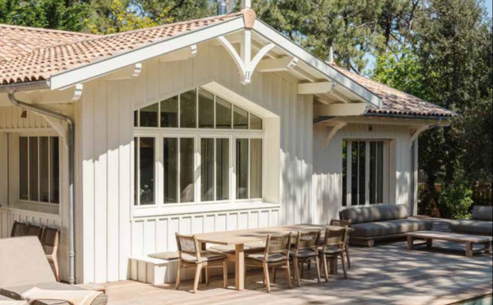 « La journée démarre sous les meilleurs auspices. Sur la grande table : le pain est encore tiède, tandis que l’odeur du café fraîchement moulu emplit la pièce. Tout autour, les matières naturelles, textiles et bois insufflent une atmosphère apaisante. Ici et là, le mobilier chiné et les objets de décoration rappellent l’esprit d’une maison de famille. Après quelques tartines beurrées, il est temps de profiter de l’extérieur ! Sur un transat, carnet de croquis en main, je tente de griffonner quelques traits tant le jardin paysagé et ses multiples essences locales sont inspirants. Tout ici invite à ralentir, à savourer l’instant présent. Seuls les éclats de rire des enfants et leurs plongeons dans la piscine animent le silence. Un brouhaha qui, loin de troubler la quiétude, devient la bande-son idéale de ces vacances d’été. Comme un lieu où les souvenirs se tissent, habité par la simplicité heureuse d’être ensemble. »
