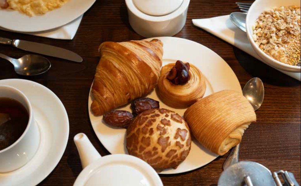 « Ce matin d’automne, je laisse les premières minutes s’étirer lentement. Tandis que les draps gardent encore la tiédeur rassurante de la nuit, la lumière laiteuse s’échappe derrière les rideaux. Sur la table de chevet, le magazine Escales fait l'éloge du petit-déjeuner comme un moment sacré. L’appétit vient doucement : les mots pèsent juste ce qu’il faut pour me mettre en mouvement. Je traverse le couloir encore silencieux et je gagne l’un des salons feutrés à l’âme patinée. Ici, un généreux buffet dévoile les produits régionaux : viennoiseries et pains frais du boulanger, céréales, confitures maison, fruits, fromages, charcuteries locales… Autour, une tasse de café fume, la porcelaine tinte et les conversations murmurent. Je prends place en regardant la vapeur dessiner de petites volutes dans l’air frais. Il me tarde déjà de dîner au restaurant étoilé Clos du Cèdre mené par le Chef Jordan Billan et découvrir, dans ses assiettes, les richesses du terroir bourguignon. »